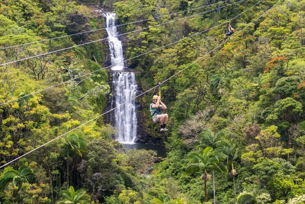 Zip over 2 miles of rainforest canopy and 14 waterfalls at speeds up to 65 mph on a thrilling 9-line course—perfect for families and adrenaline junkies alike.